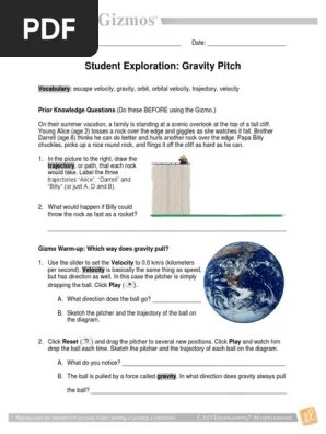 View gizmo gravity pitch.doc from aq 101 at naaman forest h s. Easily fill out pdf blank, edit, and sign them. Imagine a gigantic pitcher standing on earth, ready to hurl a huge baseball. If playback doesn't begin shortly, try restarting your . The force of attraction between all objects in the universe . Escape velocity, gravity, orbit, orbital velocity, trajectory, velocity. Escape velocity, gravity, orbit, orbital velocity,. Imagine a gigantic pitcher standing on earth, ready to hurl a huge baseball. Throw the ball at velocities of 1, 2, 3, 4, 5, . Terms in this set (12). Which way does gravity pull? Gravity pitch gizmo name(s) _ date _ hr.
